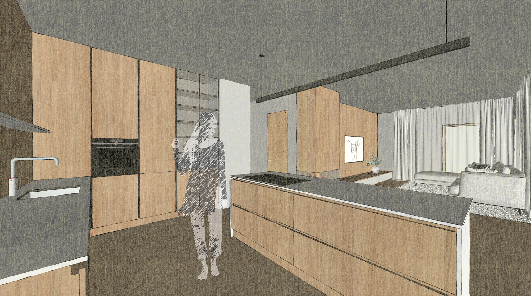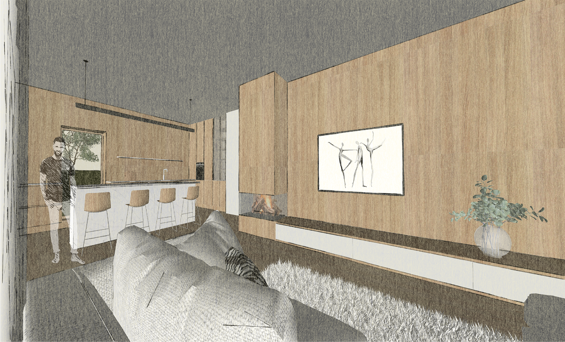 Eramu sisearhitektuurne kontseptsioon taotleb ühest küljest karget minimalistlikku selgust ja teisalt naturaalse puidu puudutusega kodusoojust. Nauditav tervik jätab silmale nähtamatuks kaasaegse kodu funktsionaalseks toimimiseks vajalikud tehnilised lahendused ja toob esile valitud asjade ilu. Interjööri läbiv mahe ja rahulik palett ammutab inspiratsiooni rannikuvärvidest ja muudab piiratud ruumi helgeks ja avatuks.